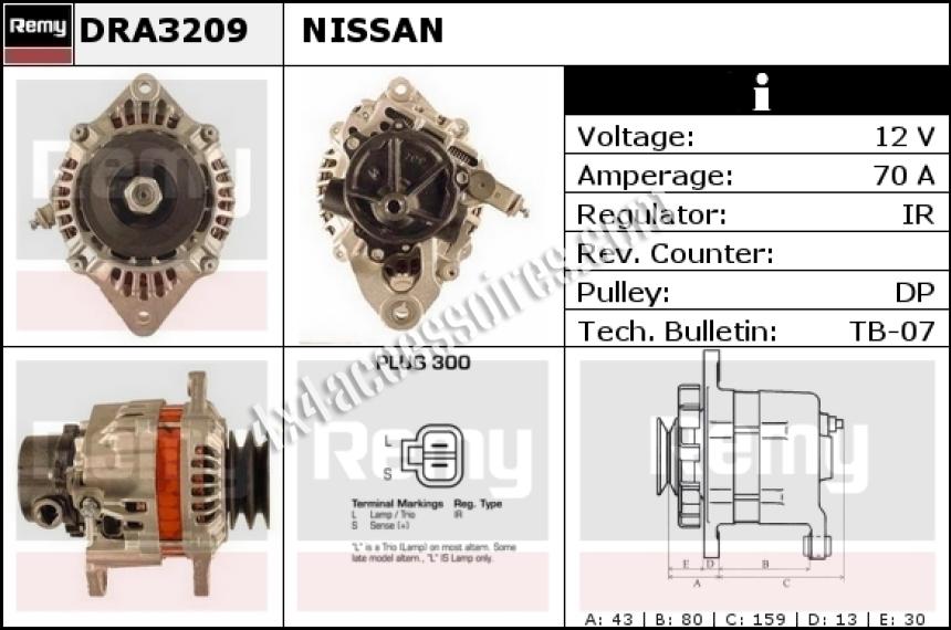 Alternateur avec pompe à vide adaptable pour Nissan Patrol GR Y60 2.8L avant août 1995 et Patrol Baroud 260.