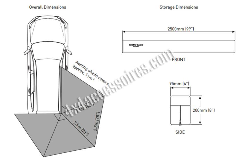 • Point d’attache Rhino-Rack inclus pour attacher l’auvent à vos barres de toit