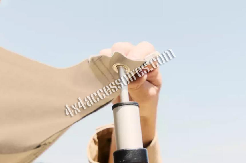 Cette conception innovante permet à l'auvent de s'étendre au-dessus de la hauteur du véhicule , offrant une ombre généreuse et une hauteur libre indépendante des dimensions de la voiture. De plus, il offre un accès pratique à la tente, assurant une protection contre les éléments et gardant l'intérieur de votre tente de toit au sec et à l'abri du soleil .