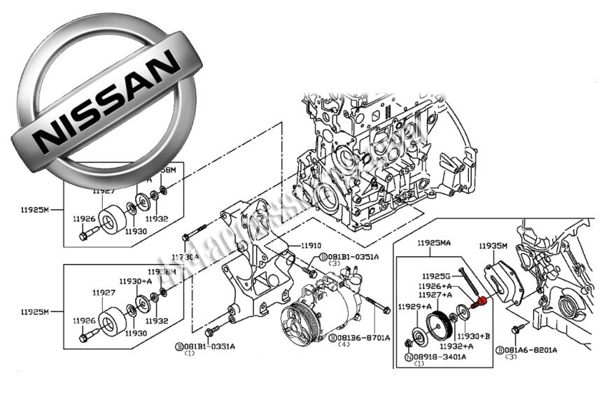 Réf. 11928-VC80BAxe du galet tendeur de climatisation pour Nissan Patrol GR Y61 4.8L / Navarra D40 / Pathfinder R51