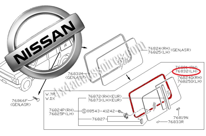 Réf. 83331-06J02Cadre de vitre coulissante latérale gauche pour Nissan Patrol Y60 long