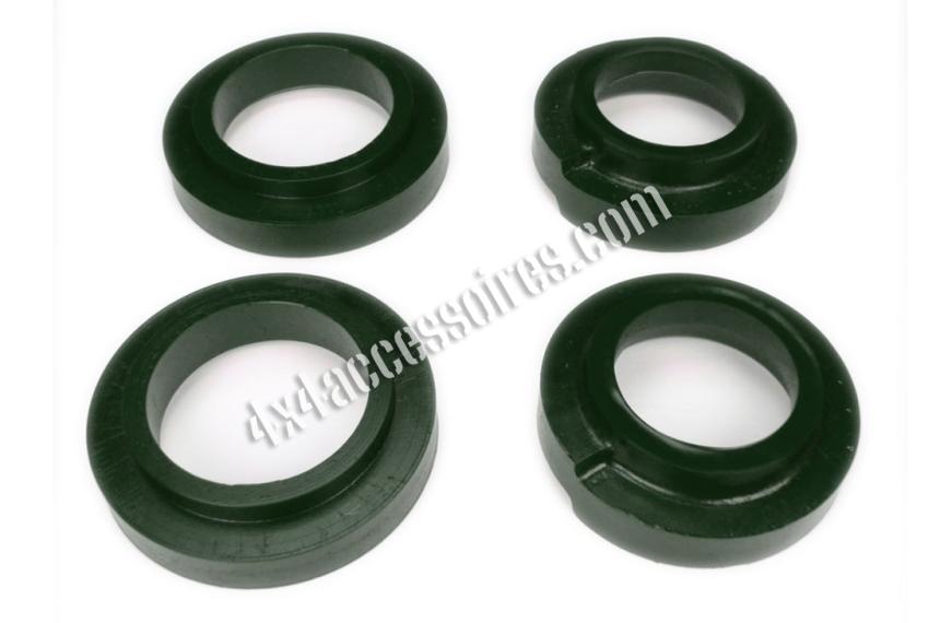 Les cales de ressorts sont une alternative peu couteuse pour ceux qui veulent réhausser leur 4x4 de 4 cm. (sans aucune modification)