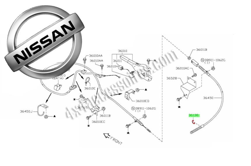 Réf. 44222-VS41AClips de fixation de câble de frein à main sur flasque pour Nissan Patrol 260 / Y60