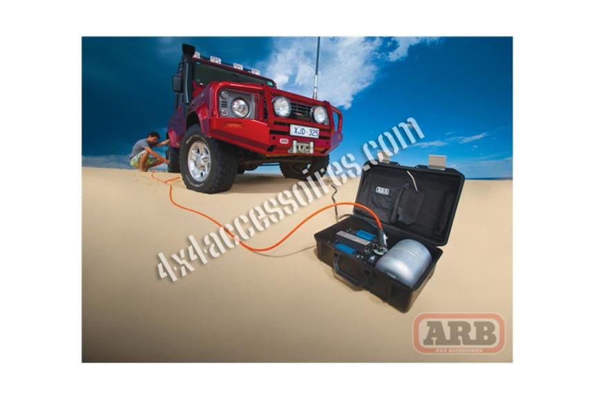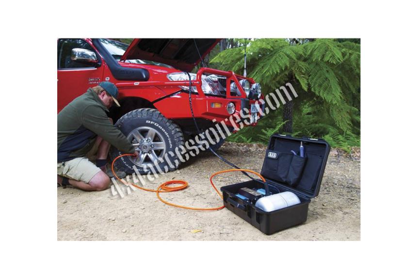 - Contrôlé par un manomètre contact de pression jusqu’à 10,3 bars (150psi) pour une utilisation d’outils pneumatiques et blocages de différentiels ARB assurant ainsi : un gros débit de 174L/min et une consommation de 56A à la pression maximale. Il est étanche (sauf filtre à air).