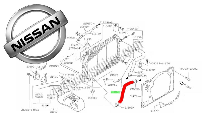 Réf. 21503-06J00 - 2150306J00Durite inférieure de radiateur pour Nissan Patrol GR Y60 4.2L Diesel