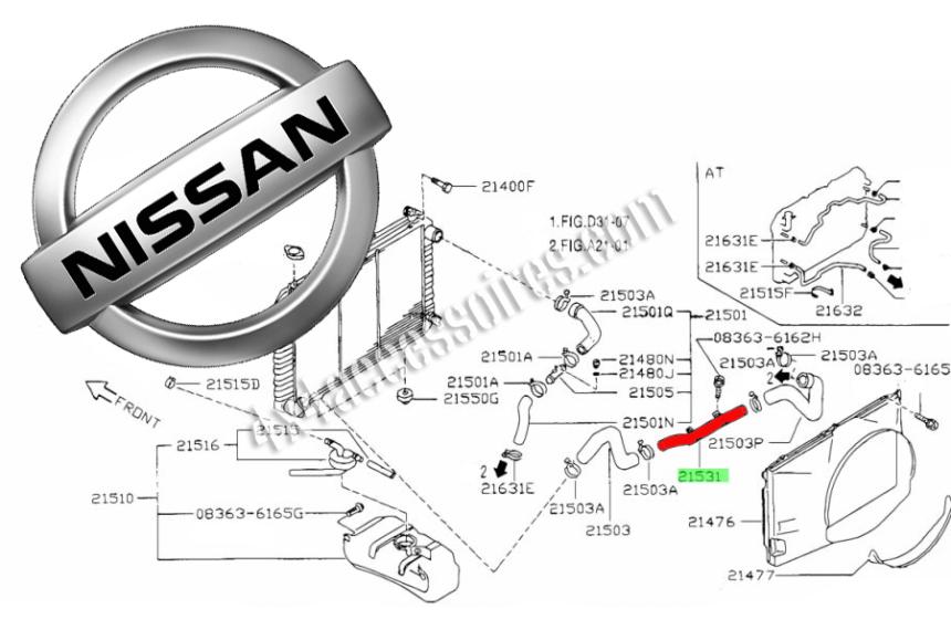 Réf. 21533-22J11Durite (tube métallique) inférieur de radiateur pour Nissan Patrol Y60 2.8 TD