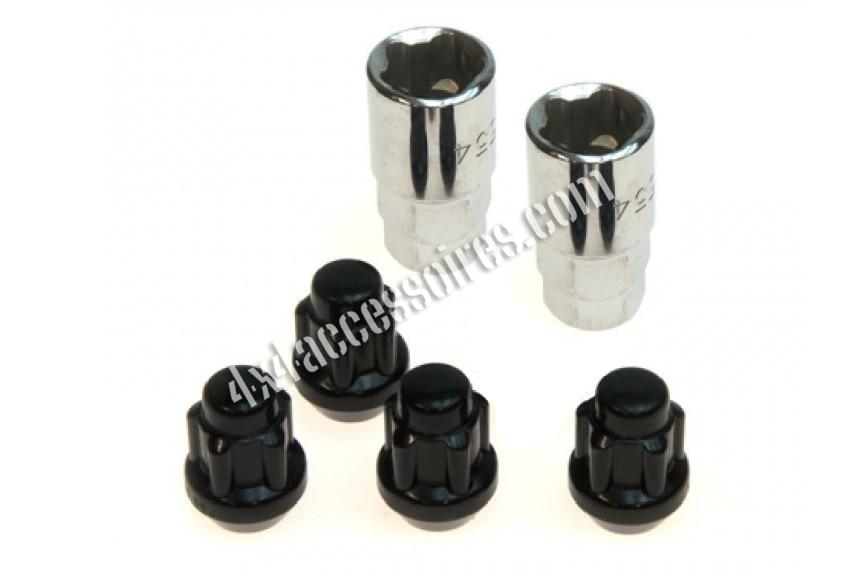 ECROU DE ROUE CONIQUE 60° ANTIVOL NOIRS 12X1.25 - JEU DE 4