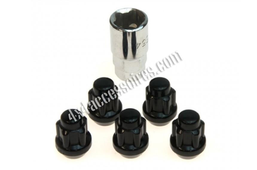 ECROU DE ROUE CONIQUE 60° ANTIVOL NOIRS 12X1.25 - JEU DE 5