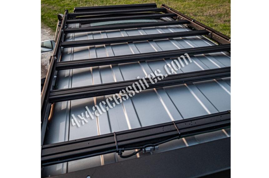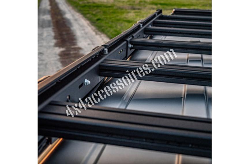 - Barres transversales en profilés d'aluminium avec système d'arrimage.