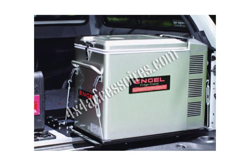 Réf. 540XSLIDESupport de frigo transversal Engel sur glissières à roulements qui permet de déporter votre réfrigérateur à l'extérieur du véhicule pour une meilleure accessibilité à son contenu.