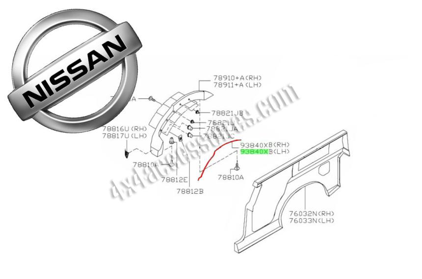 Réf. 93845-VC208Joint d'extension d'aile arrière gauche pour Nissan Patrol Y61 long avant 2005