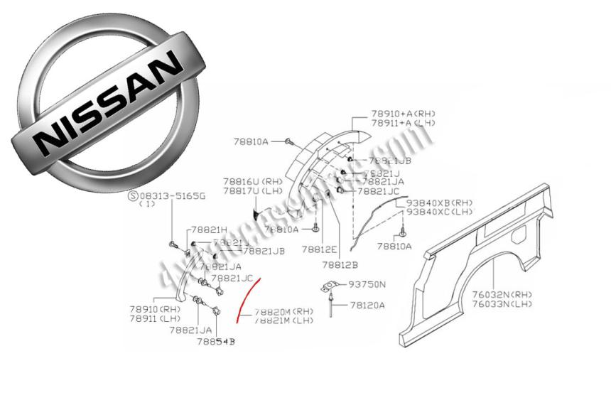 Réf. 93841-VC208Joint d'extension de porte arrière gauche pour Nissan Patrol Y61 long avant 2005