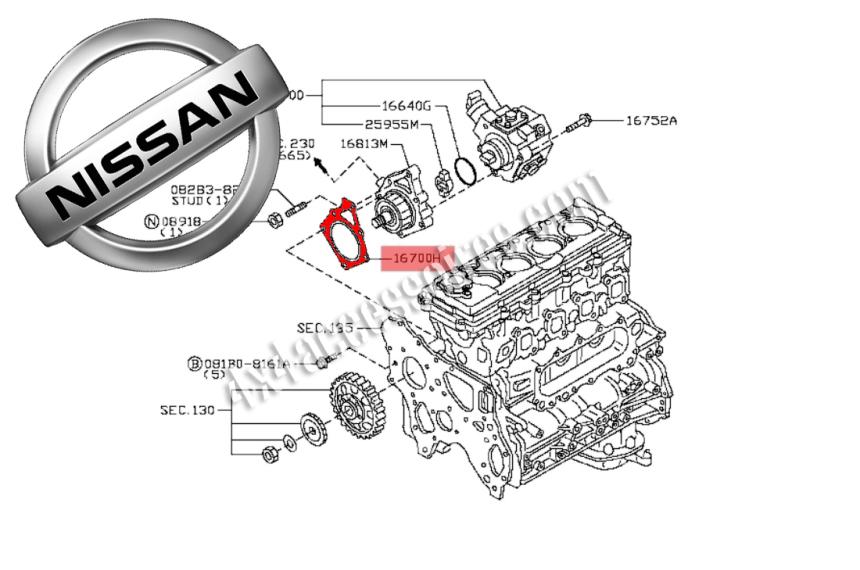 Réf. 16701-MA71AJoint métal entre la pompe à injection et le carter de distribution pour Nissan Patrol Y61 3.0L après 12/2006