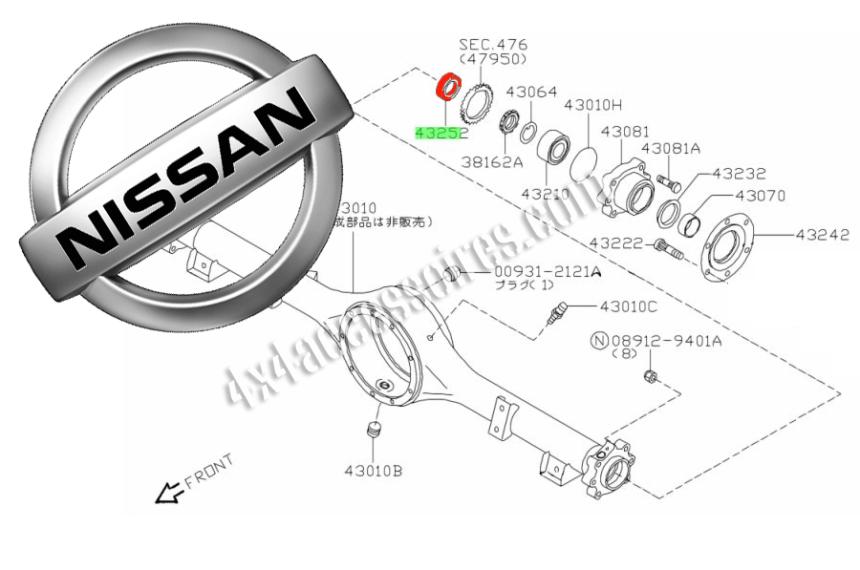 Réf. 43252-C6001 - 43252-VH300 - 43252-C6000 - 43252-G9500 - 43252-VB000Joint spi d'huile arrière droit ou gauche (dans le corps de pont) pour Nissan Patrol Y60 / Y61