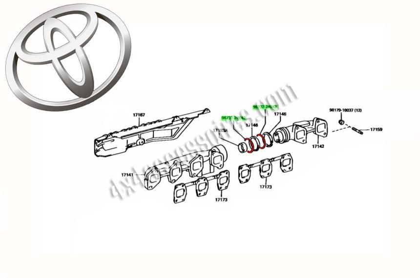 Réf. 96732-24042 - 9673224042Joint torique de collecteur d'échappement pour Toyota HDJ 80 12s et 24s