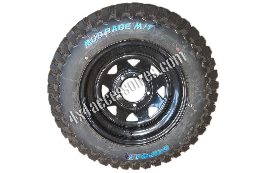 LOT DE 4 ROUES COMPLÈTES JANTES TRIANGULAR + PNEUS GRIPMAX MUD RAGE MT 195/R15