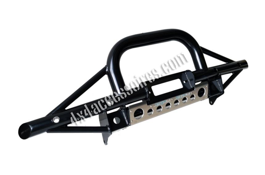 Pare-chocs tubulaire en acier avec support de treuil.