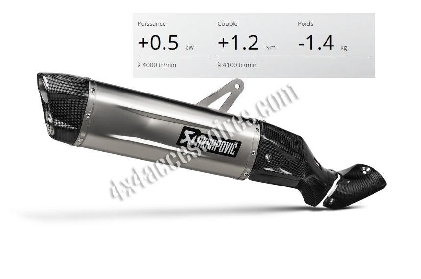 Échappement de conception titane/carbone permettant une réduction de poids de 1.4kg (environ 25% en moins sur l'origine).