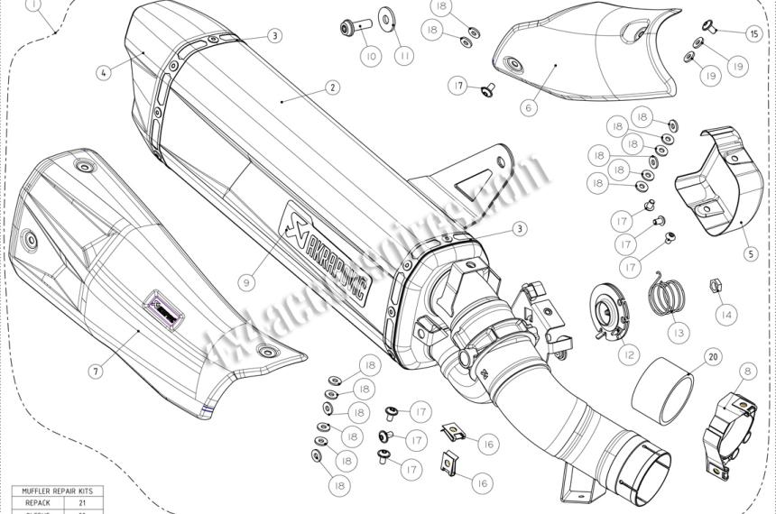 Le design massif et contrasté avec un marquage Akrapovic noir donne un aspect puissant à l'ensemble.
