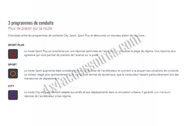 Déjà en mode City (vert), la réaction du véhicule est significativement améliorée. Le conducteur dispose d’une simple pression sur un bouton de deux autres programmes : Sport (orange) et Sport Plus (rouge).