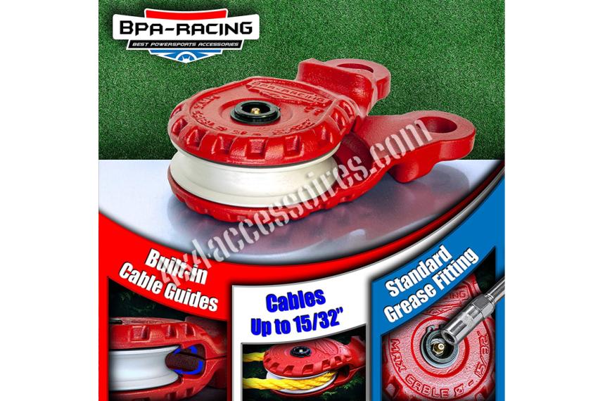 Ce renvoi permet soit d'augmenter la capacité du treuil (elle est quasiment doublée) soit de modifier la direction du treuillage sans endommager le câble ou la corde synthétique.