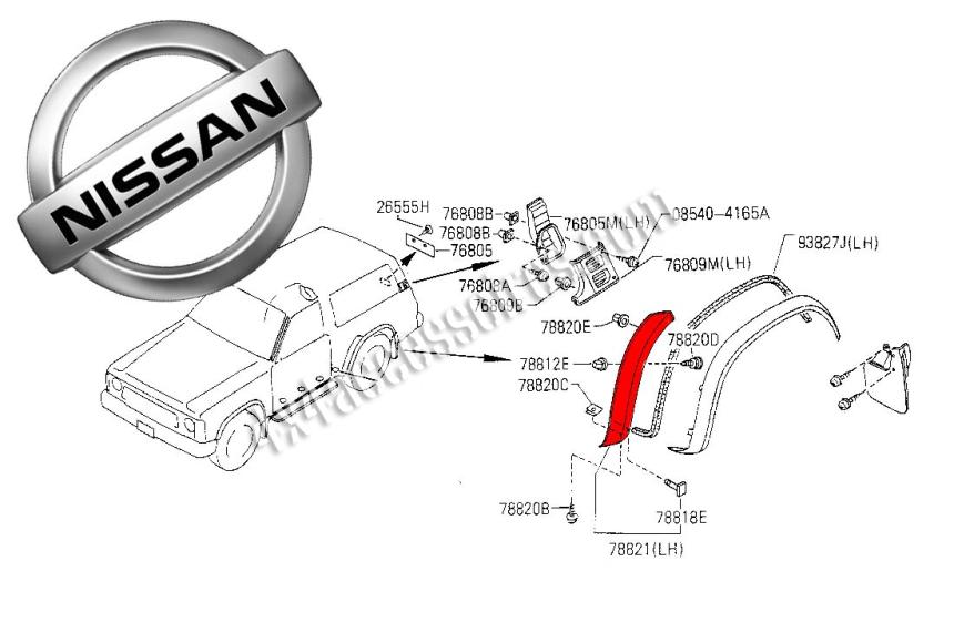 Réf. 78817-01J10Protection anti-gravillons arrière gauche pour Nissan Patrol Y60