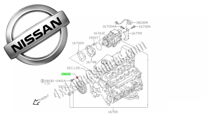 Réf. 16739-2W200Rondelle avec joint derrière le pignon de pompe à injection pour Nissan Patrol Y61 3.0L