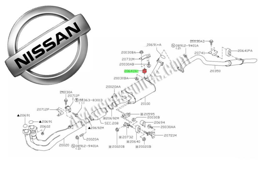 Réf. 20641-S810A - 20641-S8100Silentbloc arrière de silencieux intermédiaire pour Nissan Patrol Y61 3.0L de 2000 à 2006