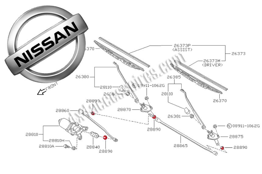 Réf. 28852-01J00 - 2885201J00Soufflet de sortie de moteur d'essuie-glace Nissan Patrol Y60