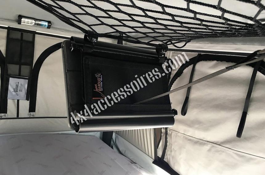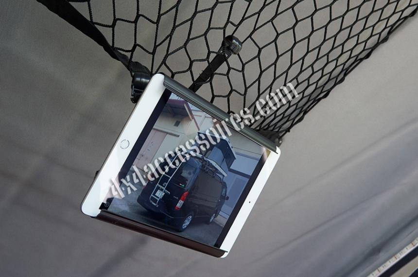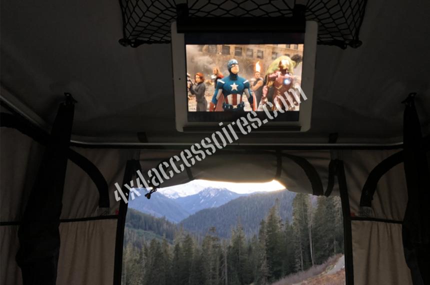 Réf. JB-465740Ce support se fixe au filet présent à l'intérieur de la tente. Il est réglable et peut accueillir tout type de tablette, jusqu'à 24 cm