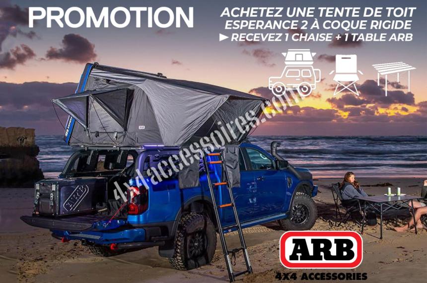 - L'installation est simplissime : déverrouillez le capot avec les nouvelles poignées en D d'ARB, soulevez la tente et dépliez-la en tirant.