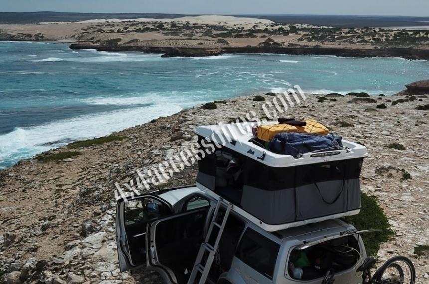 - Cette tente inclus un coffrage extérieur de rangement : Un espace sur l'arrière, équipé de points de fixation est spécialement conçu pour mettre un bagage ou un pneu sur le toit de la tente. La coque supérieure et les verins sont renforcés pour lever une charge de 25kg.