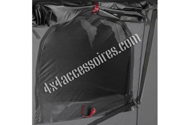 Auvents de fenêtre : Les fenêtres de la Skycamp 3.0 sont équipées de 3 couches : une partie en vinyle transparent, une moustiquaire, et une toile opaque imperméable en polyester. Le nouveau design permet une ouverture/fermeture en une seule fois de la moustiquaire et de la toile. Les auvents latéraux se replient également beaucoup plus facilement.