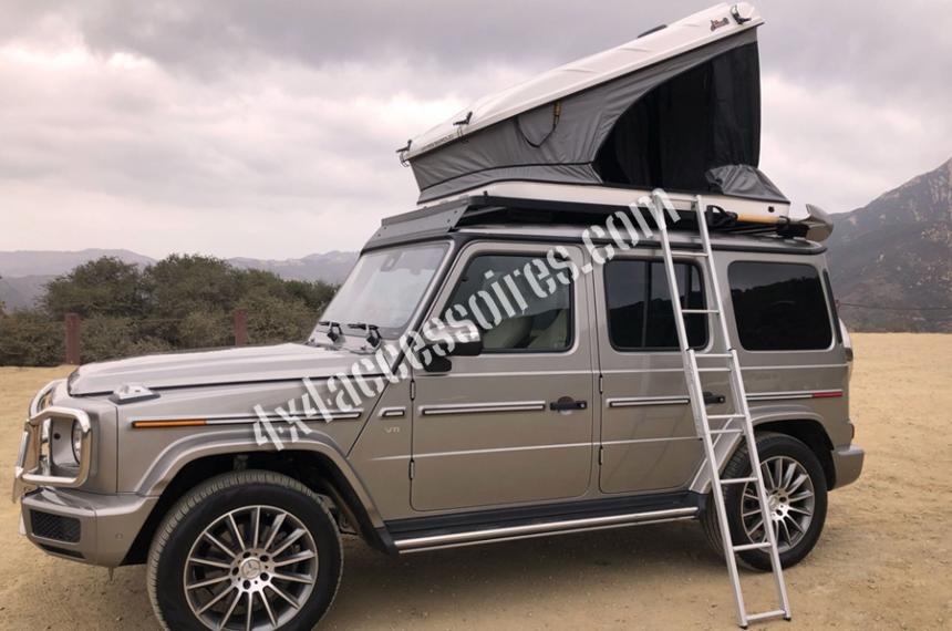 • L'échelle est coulissante, elle accompagne les mouvements du véhicule quand les personnes bougent à l'intérieur de la tente.