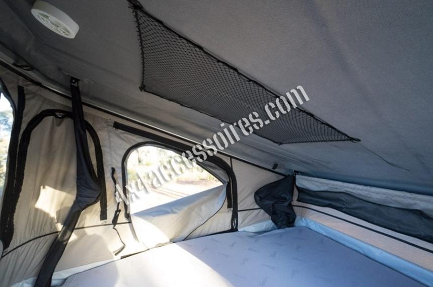 Une fois fermée, la tente dispose d'un espace de 20 cm de hauteur pour faciliter le rangement de quelques objets simples. Dans cet espace, il est possible de laisser jusqu'à 2 sacs de couchage ou couverture, 2 oreillers, 2 pyjamas ainsi que l'échelle.