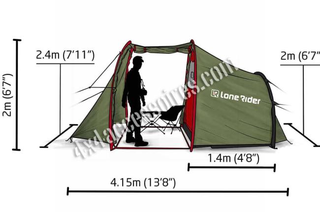 Autres caractéristiques : 4 poches, 2 crochets pour accrocher une lampe, cordage réfléchissant, tissu traité retardateur de feu aux standards Californiens CPAI84, toit de la tente résistant aux UV pour de longues années d'utilisation et 18 piquets en aluminium aéronautique.
