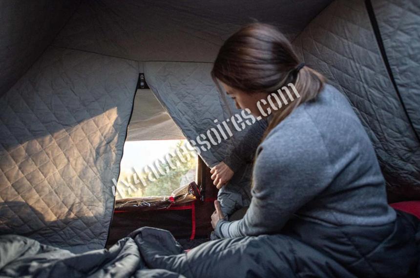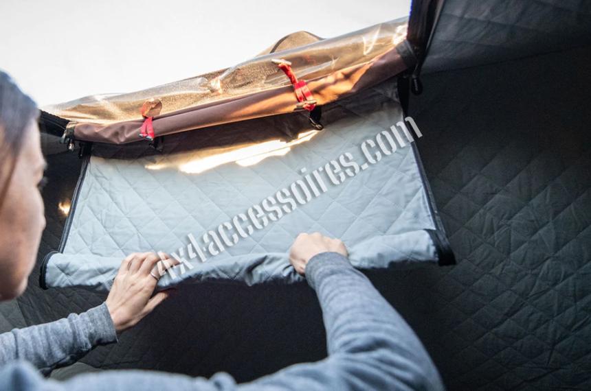 - La toile d'isolation s'installe facilement à l'intérieur de votre tente de toit en moins de 5 minutes.