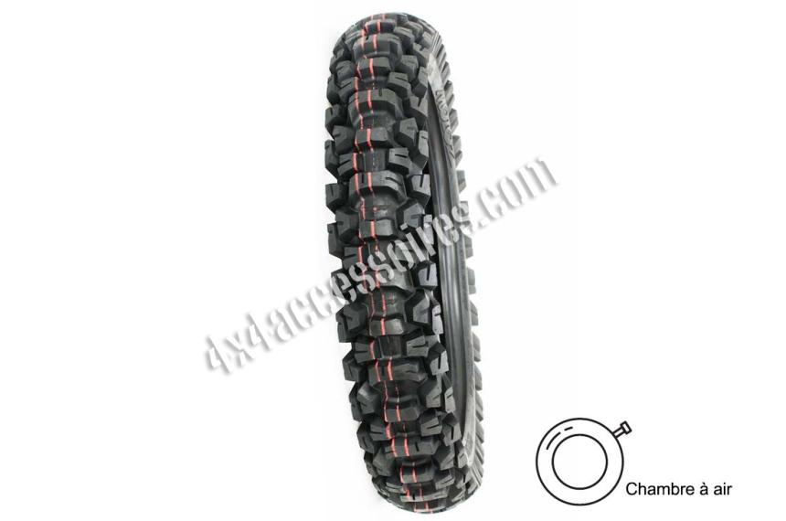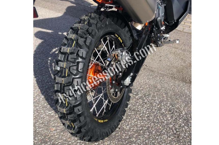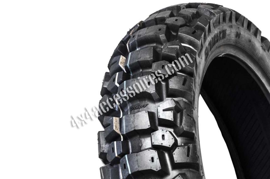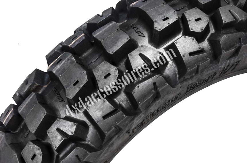 Son profil est à la fois un pneu de course du désert et un pneu d'aventure longue distance.