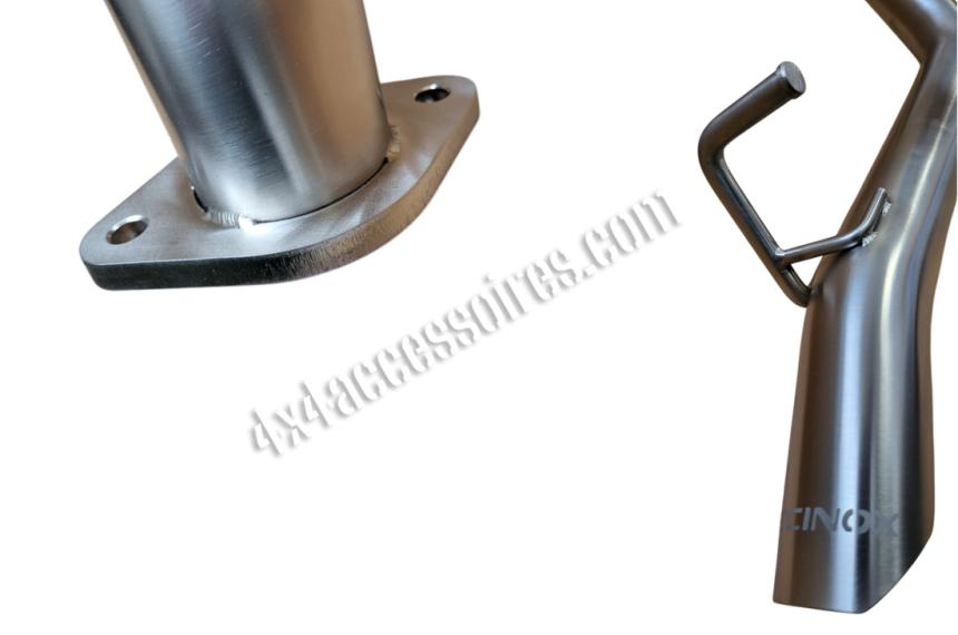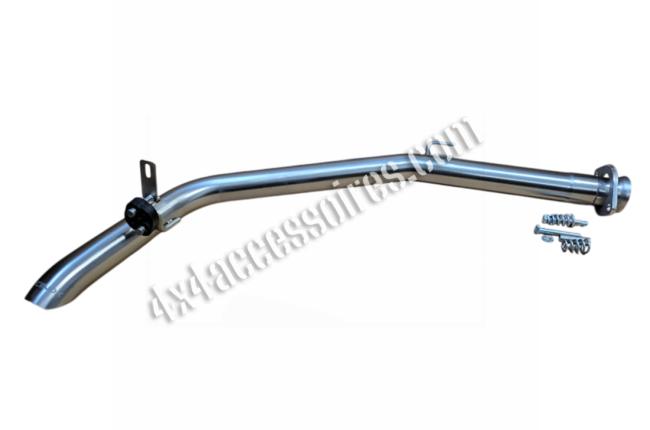 Conçu dans l'atelier de Tecinox en 2006, ce tube arrière est moins vulnérable qu'à l'origine grâce à sa sortie légèrement courbée et biseautée et à l'optimisation de son emplacement (qui permet également un gain de garde au sol). Cintré d'un seul morceau sans soudures, la pièce passe à l'endroit idéal pour sortir à l'arrière du véhicule. Joint et visserie fournis.