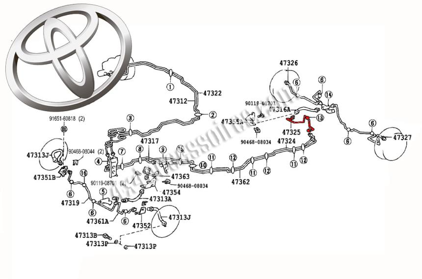 Réf. 47325-60111 - 4732560111Tube de frein rigide arrière pour Toyota HDJ 80