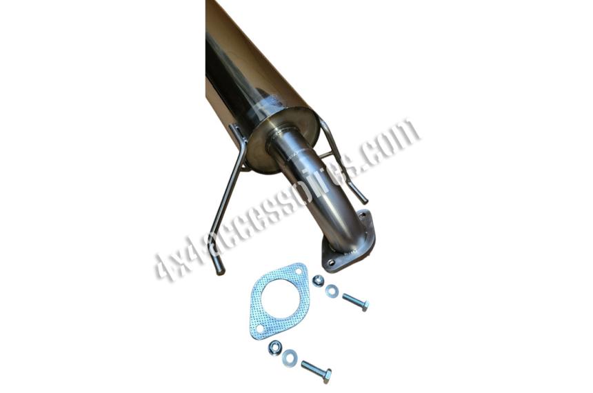 Le petit volume du silencieux et le passage effectif des gaz d'échappement de 60mm assurent une meilleure garde au sol. Les goussets (patins) évitent au maximum les accrochages en tout terrain. Fourni avec le kit de montage.