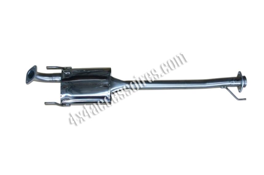 Cet intermédiaire de 10cm est nettement plus plat que celui d'origine ce qui permet un important gain de garde au sol, tout en améliorant la puissance du véhicule. La sonorité est un peu plus élevée qu'à l'origine, mais reste agréable (pour garder une sonorité comme à l'origine sur les KZJ95 il faut rajouter la référence TOYO173 en tube primaire). Les pattes de fixations sont également en inox et tombent parfaitement en face des supports d'origine.