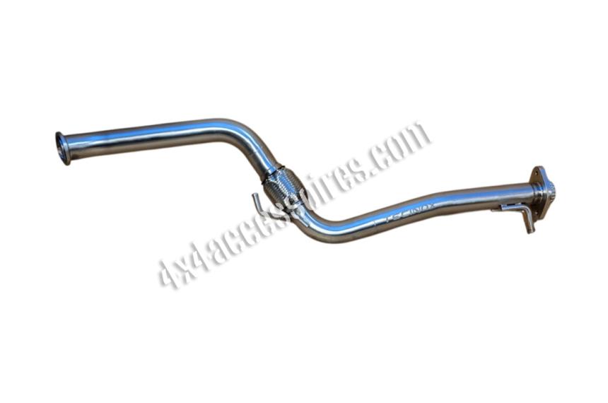 Tube primaire 100% inox, se positionne entre notre décatalyseur (ou le catalyseur d'origine) et le tube intermédiaire avant silencieux. Nous avons modifié le design de la pièce d'origine afin de l'intégrer au mieux aux soubassements du Jimny, il en résulte un appréciable gain de garde au sol. Compatible avec les autres éléments constitutifs de l'échappement d'origine. Joint et visserie fournis.