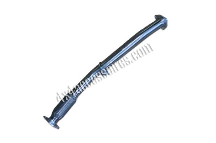 Réf. NISS124Ce tube primaire est brossé pour un aspect homogène (facilite le contrôle des défauts). Le flexible tout inox sur le tube permet de garder une souplesse entre le mouvement moteur/échappement et la dilatation/rétraction chaud/froid de la ligne. Le passage effectif est amélioré par rapport l'origine par le cintrage sur la cintreuse à mandrin qui permet d'obtenir un diamètre continu égal pour un meilleur flux des gaz.