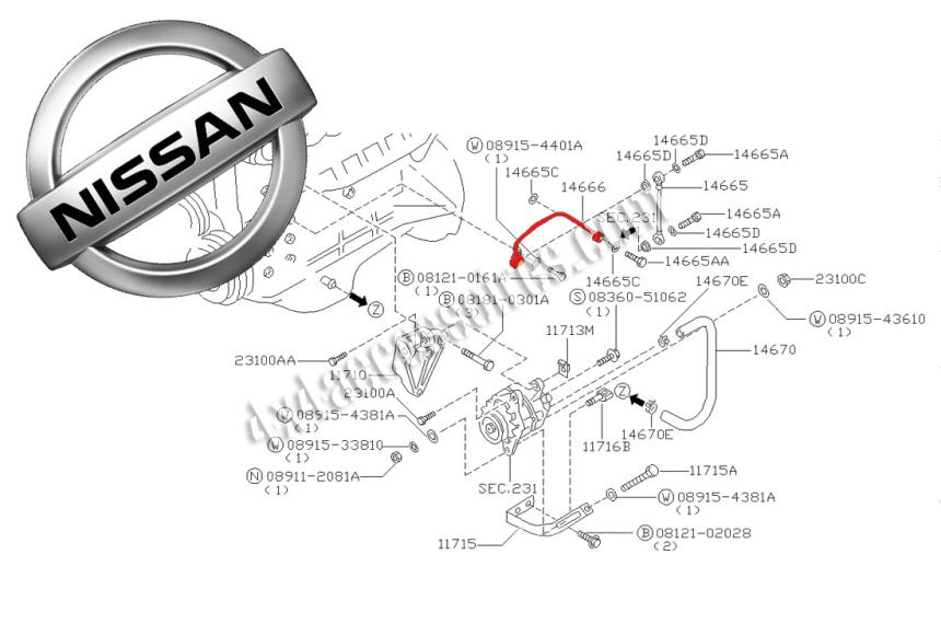 Tube rigide d'alimentation en huile pour la pompe à vide pour Nissan Patrol Baroud 260 / GR Y60 2.8L de septembre 1988 à août 1995
