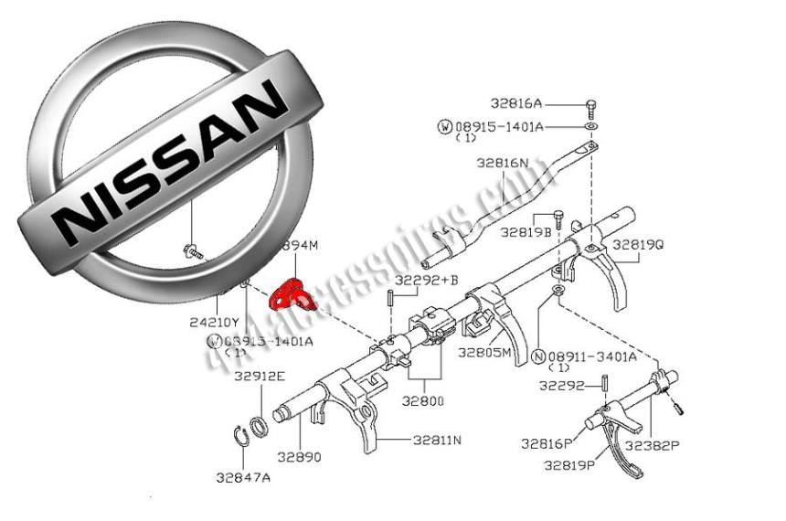 Réf. 32897-30P1A - 32897-30P10Verrouillage de sélecteur de vitesse pour Nissan Patrol GR Y60 après 11/1996 et Y61 2.8L TD6