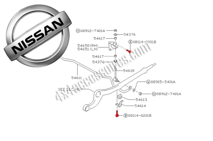 Réf. 08114-0201B - 081140201BVis de fixation du cavalier de barre stabilisatrice avant pour Nissan Patrol GR Y60.