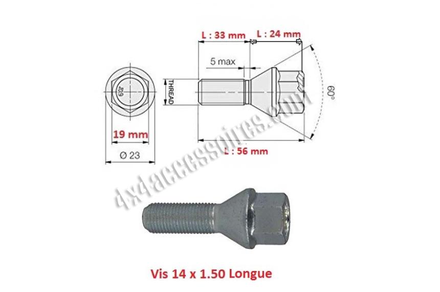 Vis de roue chromée conique 60° 14 X 1.50 (longue)